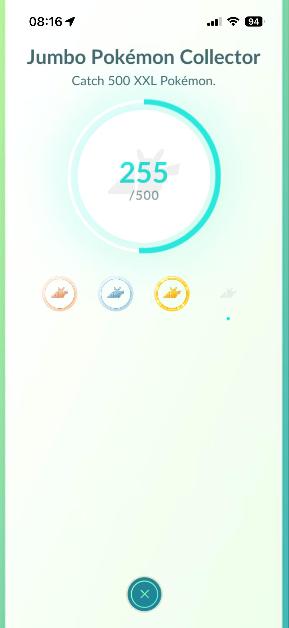 Got this medal a few days ago, now I’m at 505 XXL Pokemon
