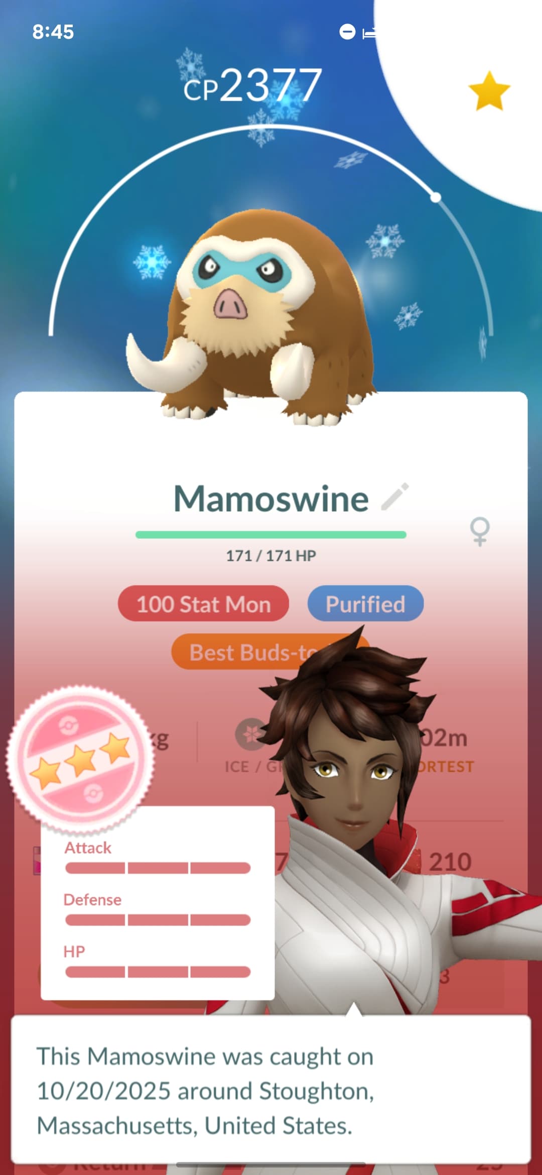 Sableye, Beedrill, Talonflame, Toedscool, Arbok, and Mamoswine are Hundos 27-32, respectfully. Sableye was purified from 14/13/14 IVs, and will likely be maxed out during this years’ Halloween Event. Beedrill was once a wee little wild Weedle - The shortest one on record! Now, since its fully evolved, It will be able to Mega Evolve purely for candies, as I transition from the purified 98% that I’ve always used. Talonflame was once a 13/13/13 Shadow Flecthling, and since I already have one for PvP, I’m going to max this one out instead. Toedscool was a wild spawn from a Daily Incense, making it the first Gen 9 Hundo (and I thought it would be Annihilape or Kingambit). Arbok is yet another wild spawn after 6pm, joining Hundo Toedscool, Arbok and Aggron, as well as the latest 100 Stat Mon, Mamoswine. This evolved from a 13/13/13 shadow Swinub, and will be maxed out for Master League.